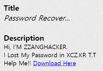 XCZ.kr 사이트의 비밀번호를 찾아달라는 문제였다. 파일을 받아보자