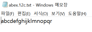 그래서 abex.12c 파일명을 가진 12사이즈의 파일을 만들어 보자