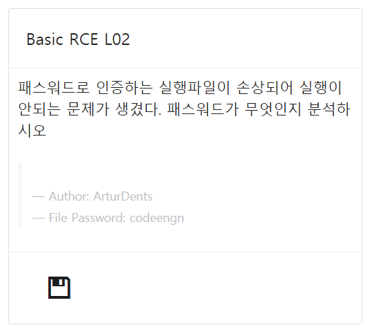 패스워드를 찾아야 할 것 같다. 문제 파일을 다운받아보자