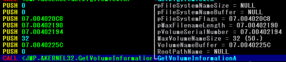 아마 GetVolumeInformationA 함수가 그 역할을 할 것 같다.