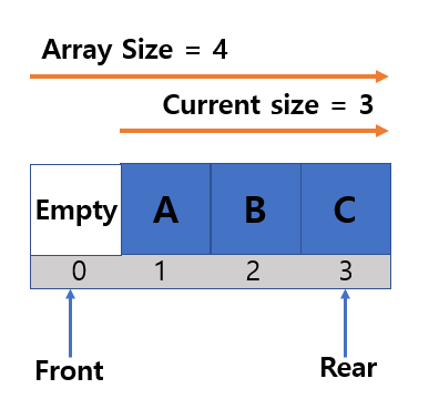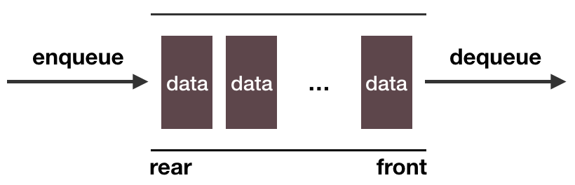 맨 처음 추가된 데이터를 front라고 하고, 맨 나중에 추가된 데이터를 rear라고 한다.