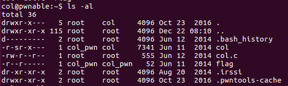 당연히 flag는 실행이 안되는데, 그래서 col을 실행해보면