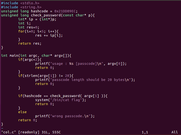 당연히 flag는 실행이 안되는데, 그래서 col을 실행해보면