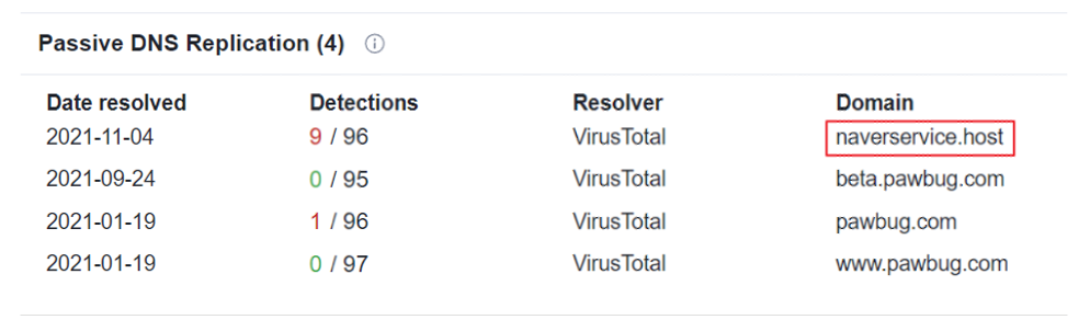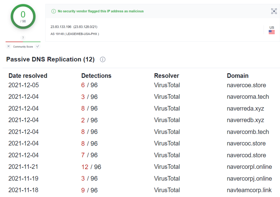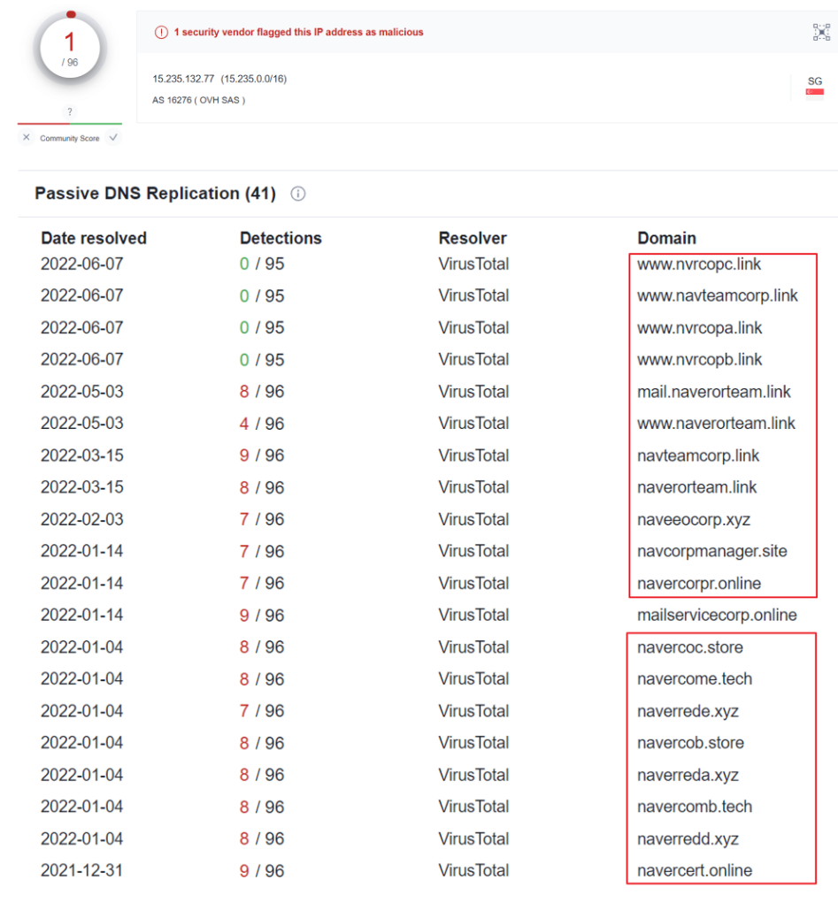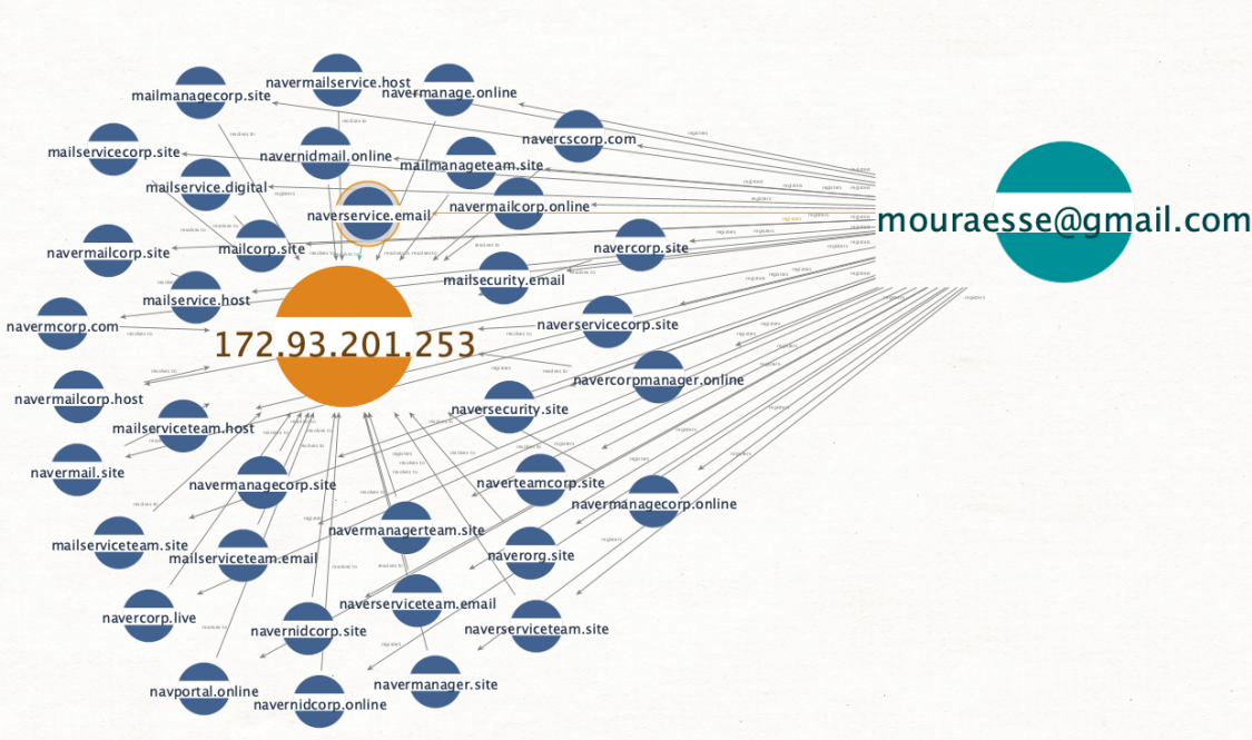 - 네이버 피싱 활동에서 확인된 도메인 중 최소 2개 이상 연결