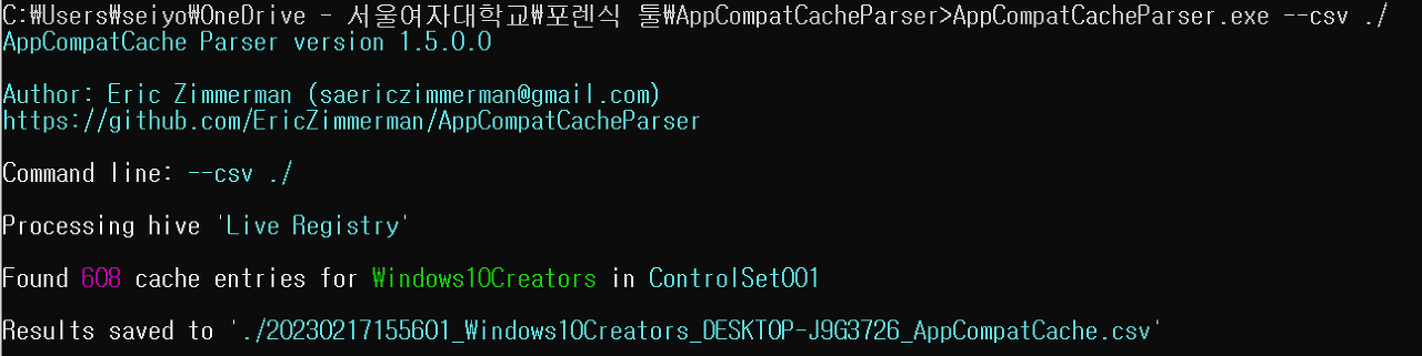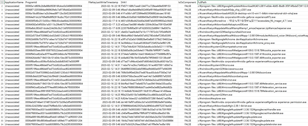 cmd 명령어로 AmcacheParser.exe -f Amcache.hve --csv ./