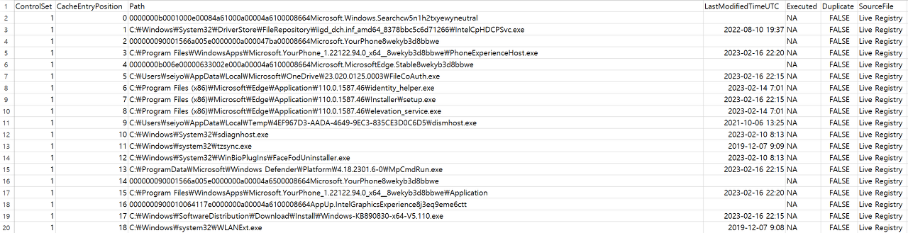 - HKLM\SYSTEM\ControlSet001\Control\Session Manager\AppCompatCache