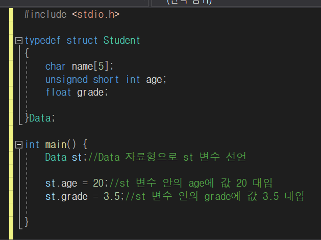 이때 선언한 Data는 변수이다. (=struct Student Data;)
