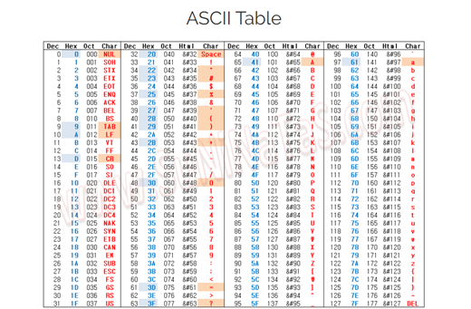 바이너리 파일이므로 아스키코드로 문자를 표현하는 것 같아 아스키코드 표를 가지고 나타내보기로 했다.