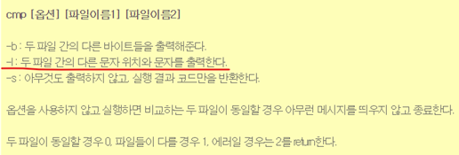 그래서 cmp 명령어의 옵션을 찾아보았는데,