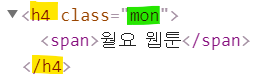 메타 부분은 h4로 같고, 클래스 명만 그 요일 명으로 되어 있는 것을 확인했다.